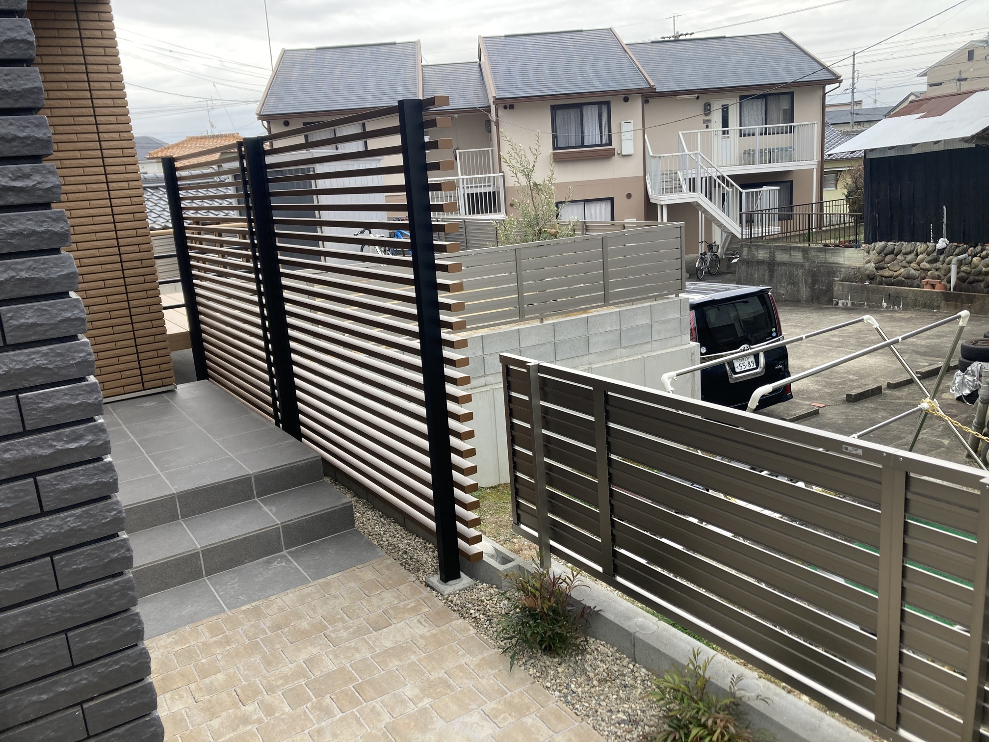 横格子のフェンスは上下の高低差に対しての目隠し効果が高くてお勧めです。